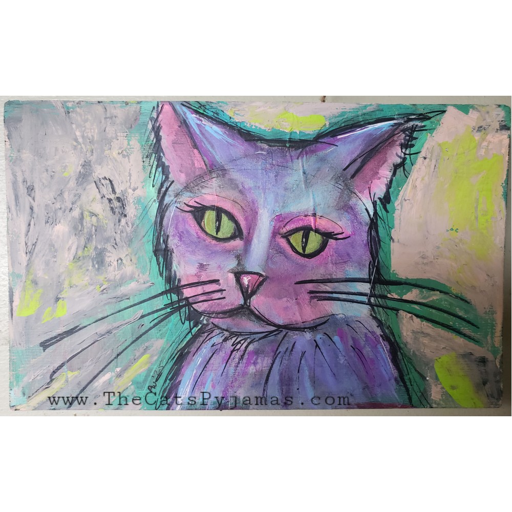 Mixed media painting on a wrapped canvas. I used a combination of acrylic paints, watercolors, oil pastels, and colored pencils with lots of bright colors and hand-lettering.