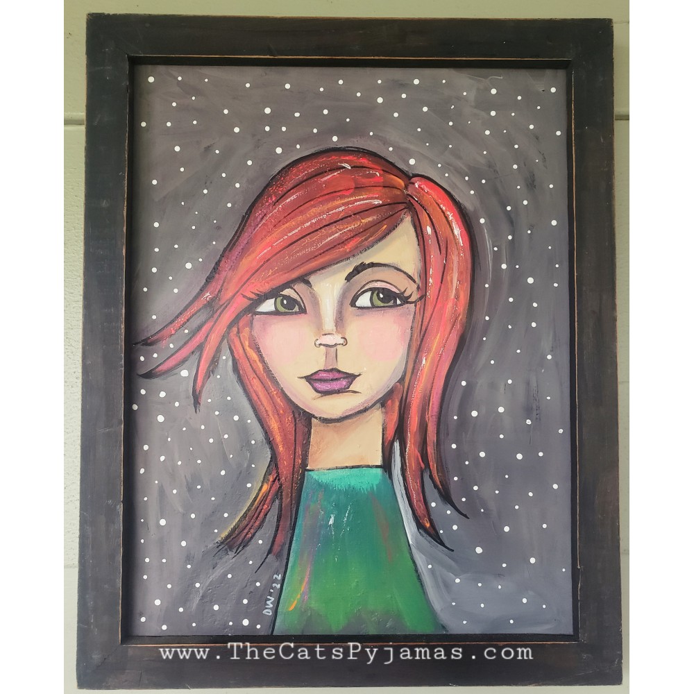 Mixed media painting measures a little over 15.5" x 11.5" including the hand-made wooden frame.