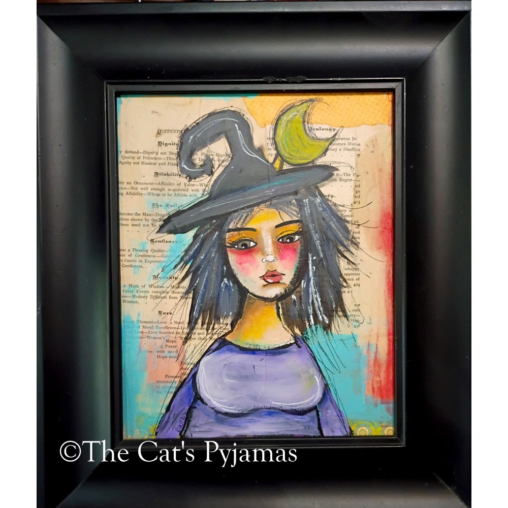 Mixed media art painted on pages of an old book. Measures 14.25 x 12.25"