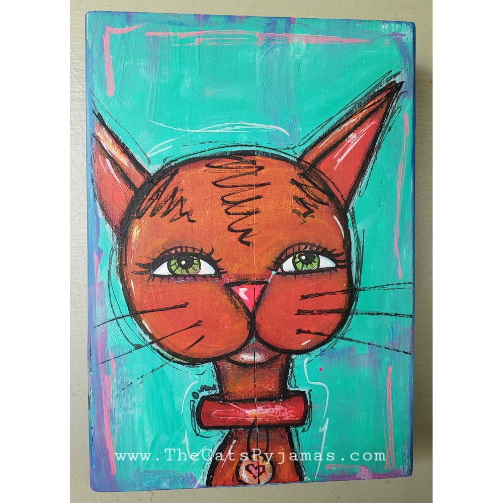 Mixed media painting on wood that measures 7.5" tall x 5.5" wide. I used a combination of acrylic paints, watercolors, oil pastels, colored pencils, and lots of bright colors.