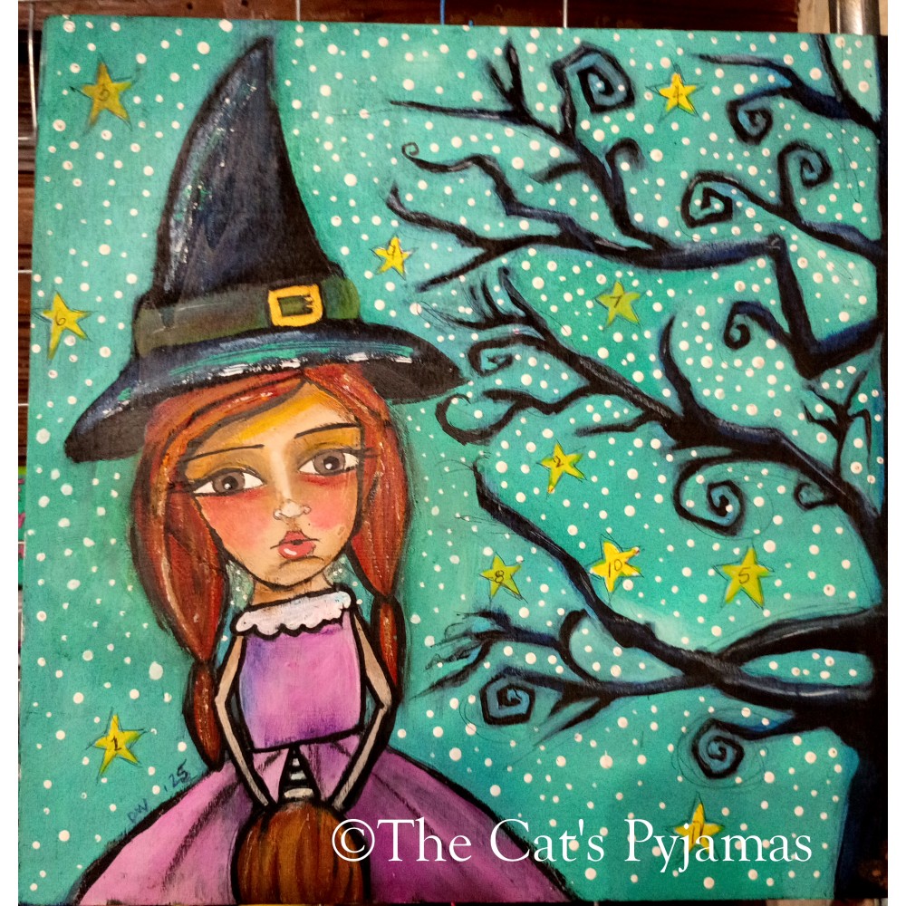 Mixed media painting on wood, measures 11.25" x 10.25"