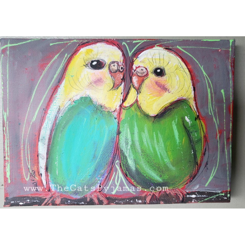 Mixed media painting on a wrapped canvas. I used a combination of acrylic paints, watercolors, oil pastels, and colored pencils with lots of bright colors and hand-lettering.