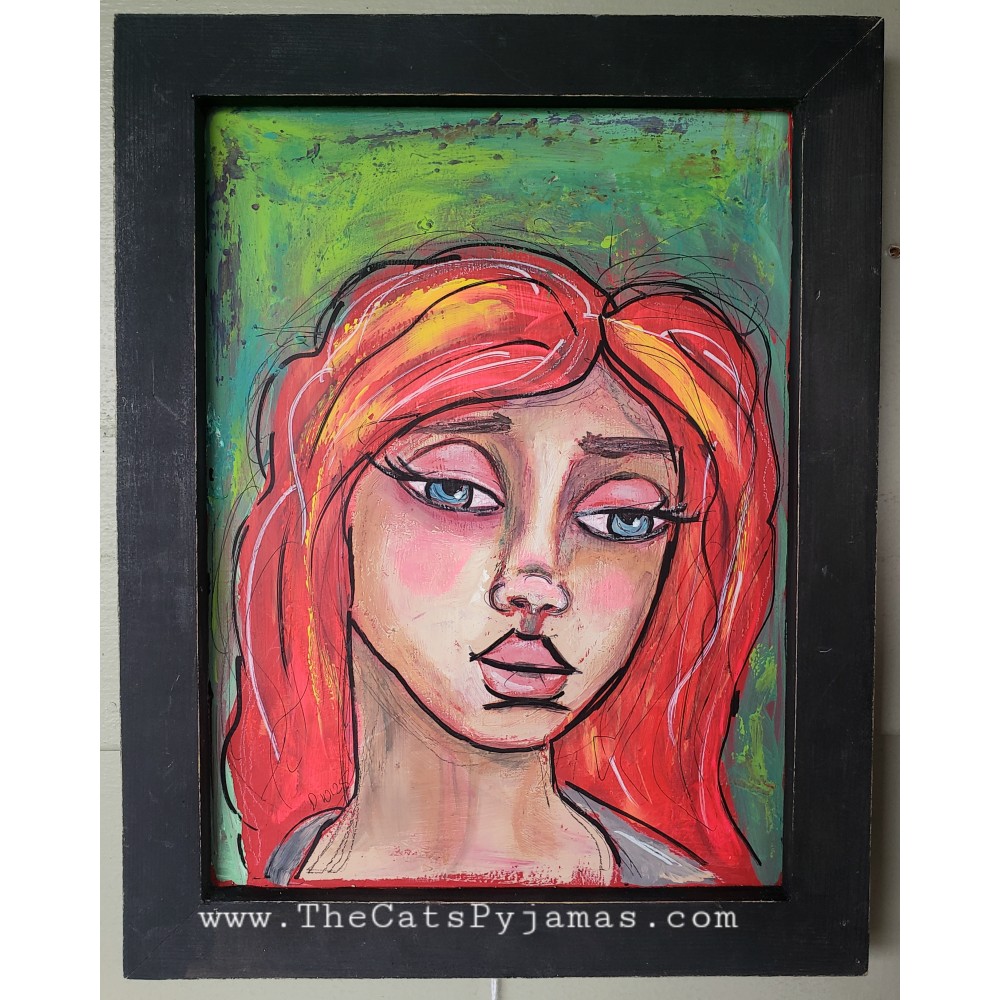 Mixed media painting on wood in a hand-made wooden frame. Measures 12" x 9.5"