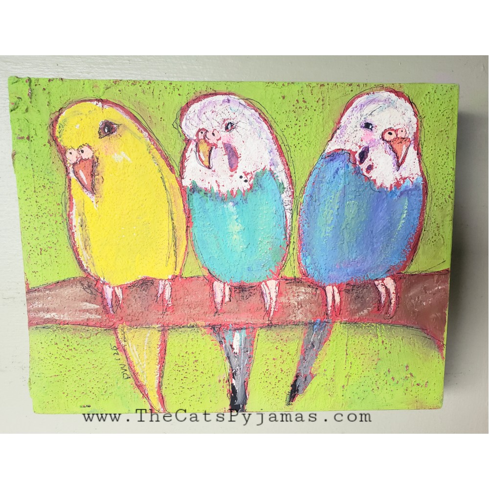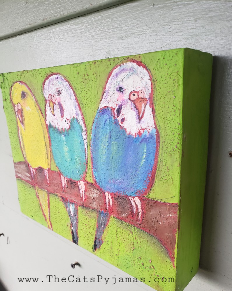 Mixed media painting on wood. I used a combination of acrylic paints, watercolors, oil pastels, and colored pencils with lots of bright colors and hand-lettering.