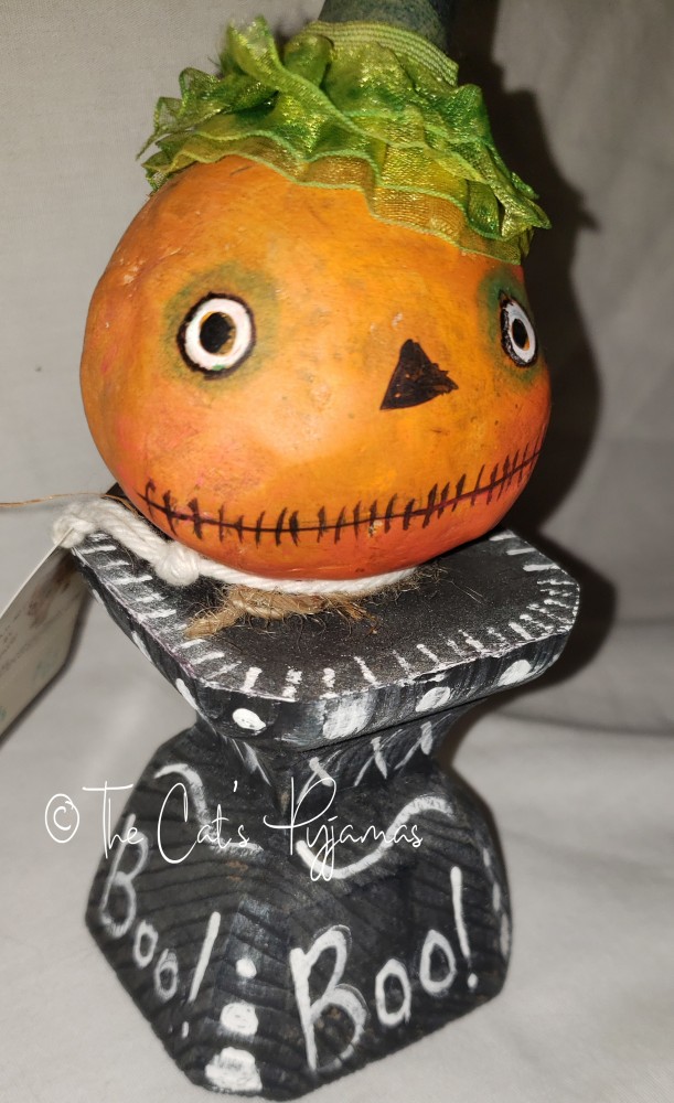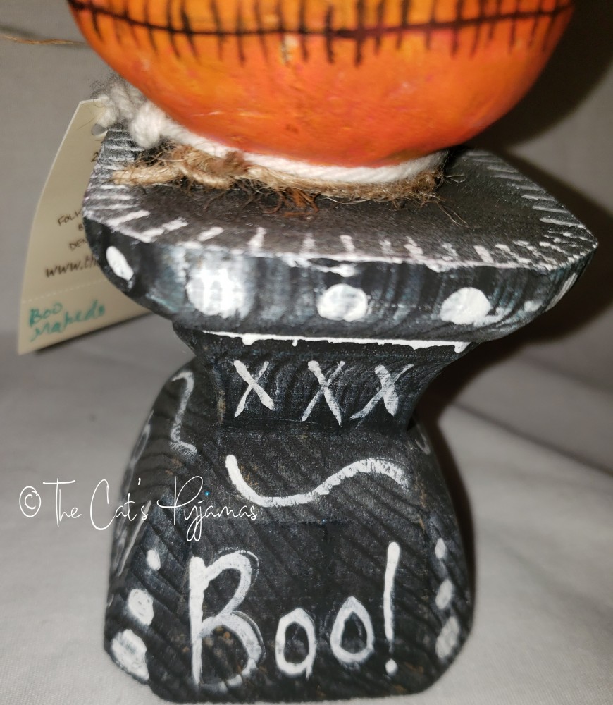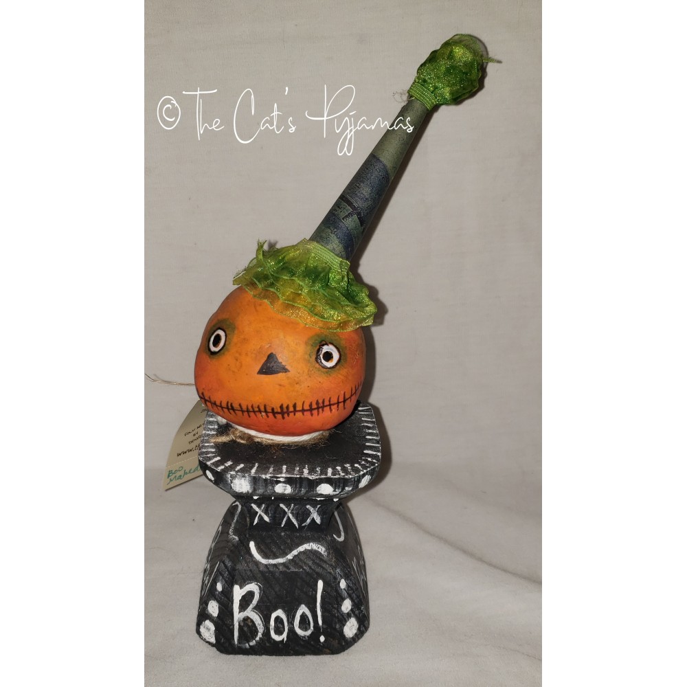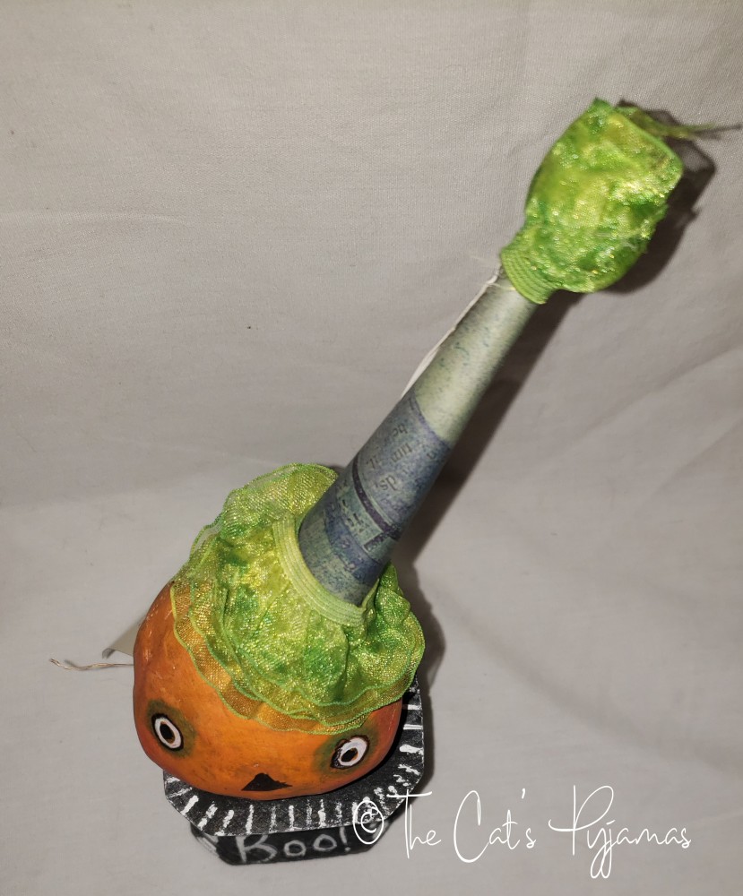 Sculpted from paperclay and hand-painted. The base is painted wood, measures 10.5" tall.