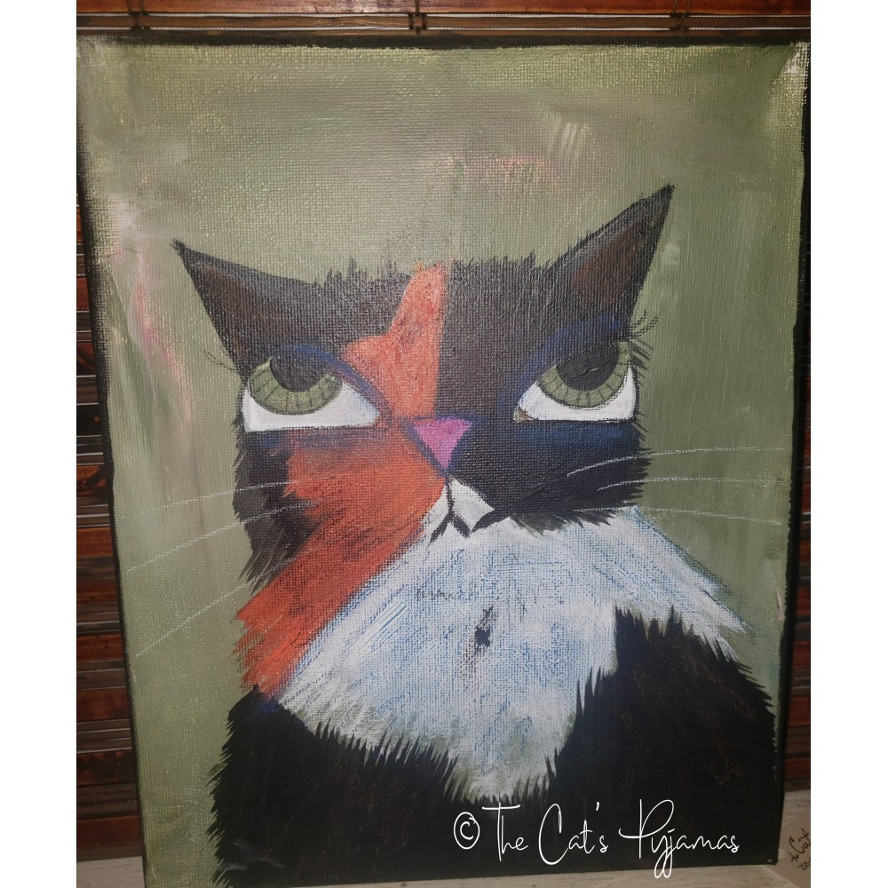 Painted on stretched canvas using a combination of acrylics, oil pastels, watercolors, and colored pencils. Measures 8" x 10".
