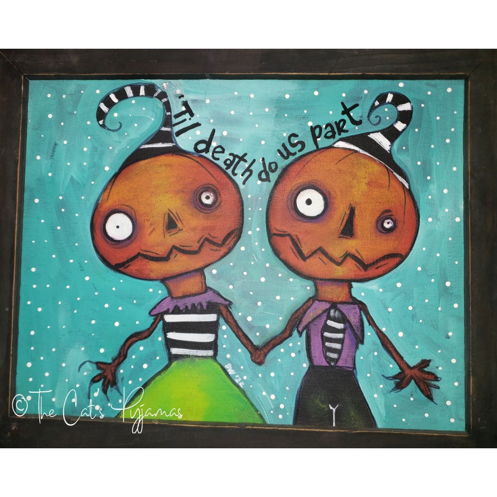 Mixed media painting measures a little over 15.5" x 11.5" including the hand-made wooden frame.