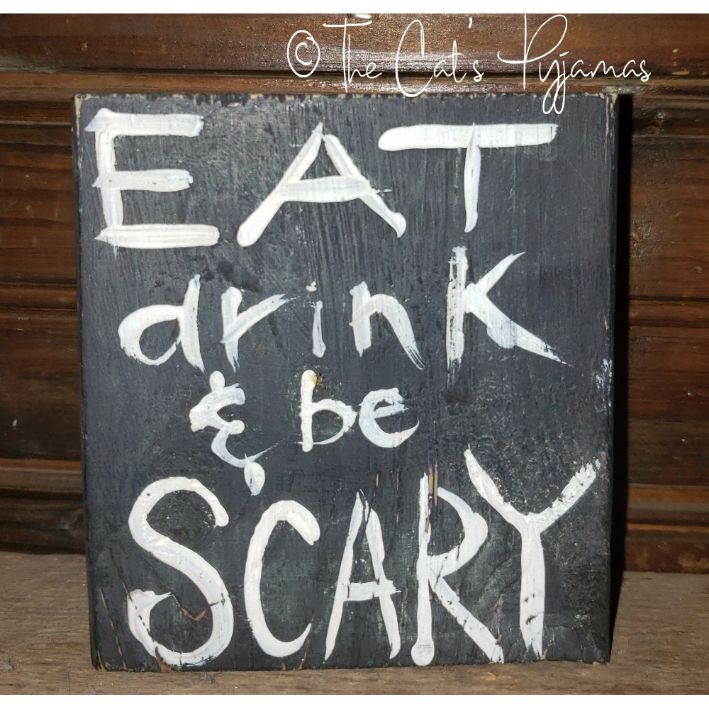 Salvaged block painted black with white hand-lettering. Measures 3.75" x 3.5" x 1.5".