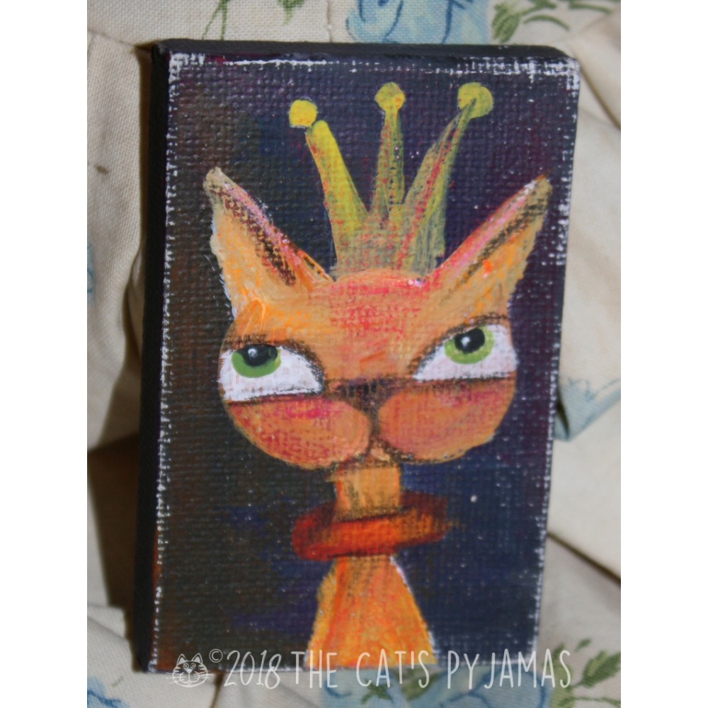 Hand-painted ornament on wood with a vintage pipe cleaner hanger. 3" x 3"