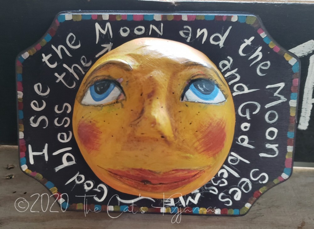 Tags: moon, full moon, paperclay, paper clay, papier mache, paper mache, big eyes, folk art, words, quote