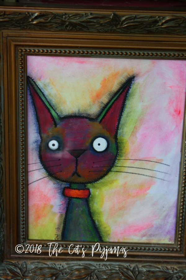 Oh, Oliver, I love those big ol' ears and surprised look on your face! I used a combination or acrylic paints, watercolors, oil pastels and colored pencil and I used lots of bright colors.
