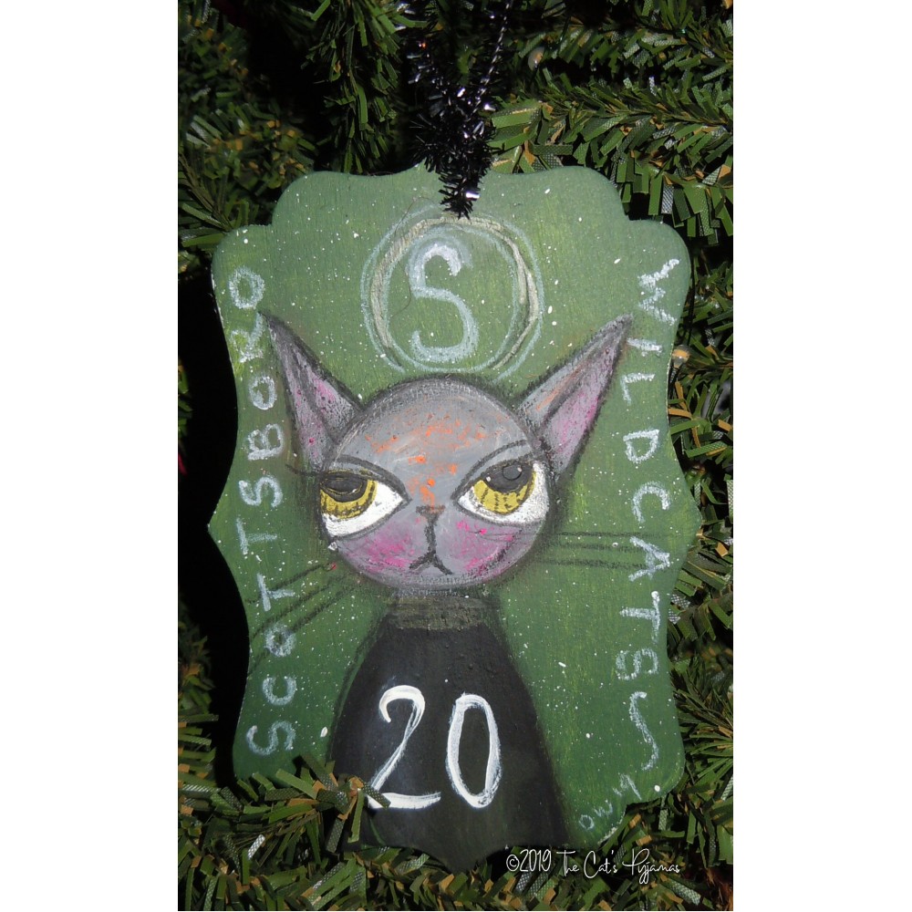 Hand-painted Scottsboro Wildcats ornament painted on wood