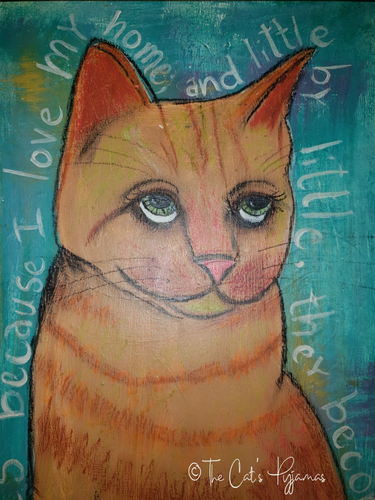 Mixed media art using a combination of acrylics, oil pastels, watercolors, colored pencils, and charcoal. Framed in a vintage gold frame that measures 24.25" x 14.25".