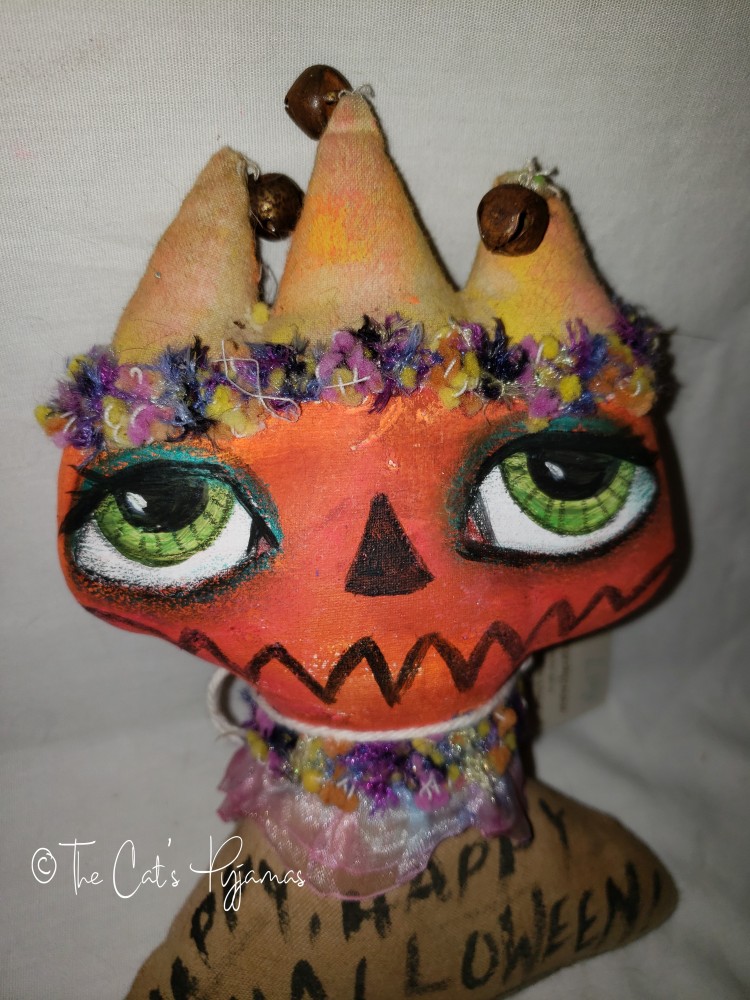 Made of painted fabric using a combination of acrylics, oil pastels, watercolors and colored pencils.