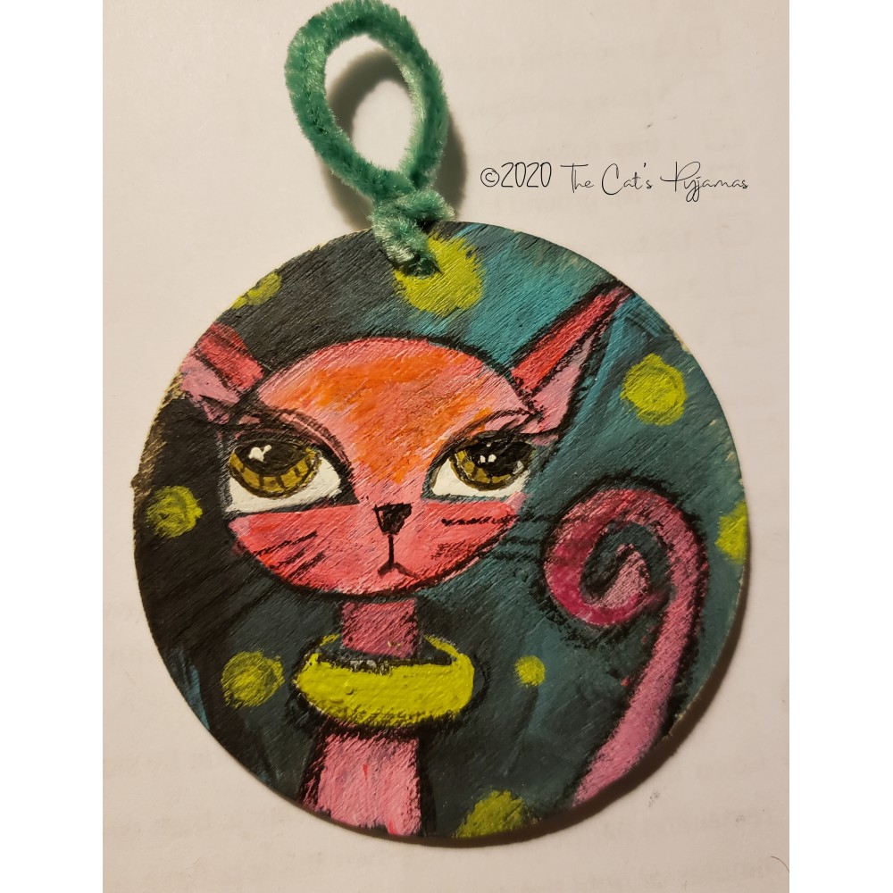 3.25" wooden ornament, hand-painted and one of a kind.