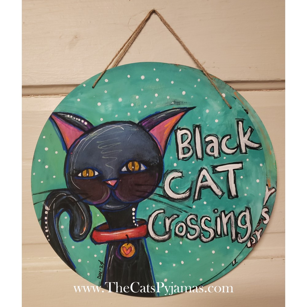 Black Cat Crossing Door Hanger