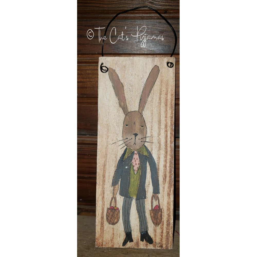 Hand-painted wooden sign, 7.25" x almost 3" wide with a wooden hanger.