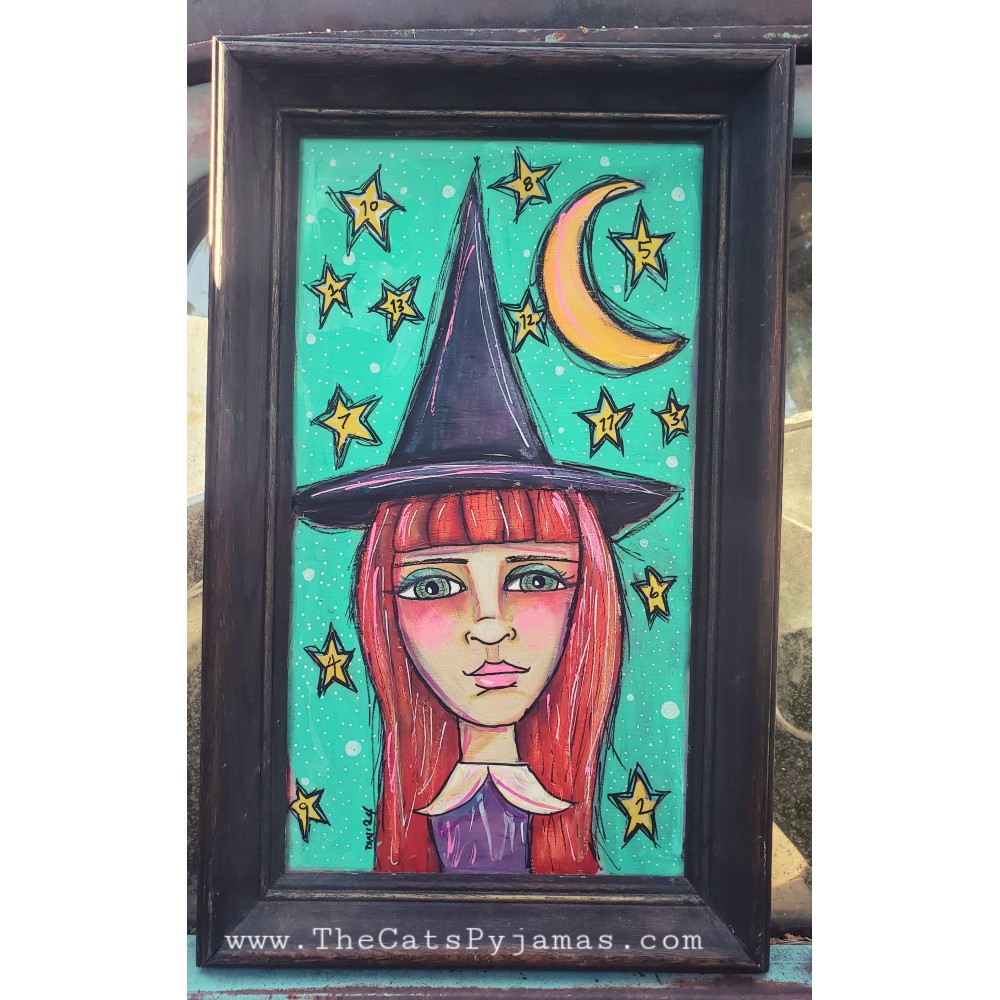 Framed mixed media painting in a vintage wooden frame. Measures approximately 18.75" x 11.5".