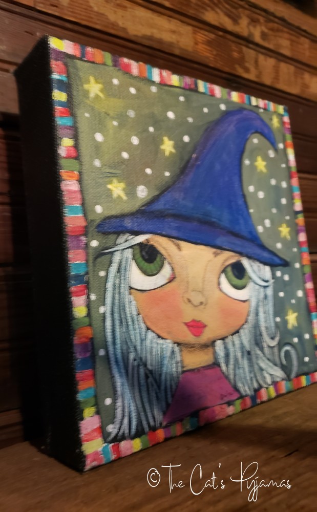 Painted using a combination of acrylics, oil pastels, watercolors, colored pencils, and charcoal. Measures 8" x 8" wrapped canvas and is 1.5" deep.