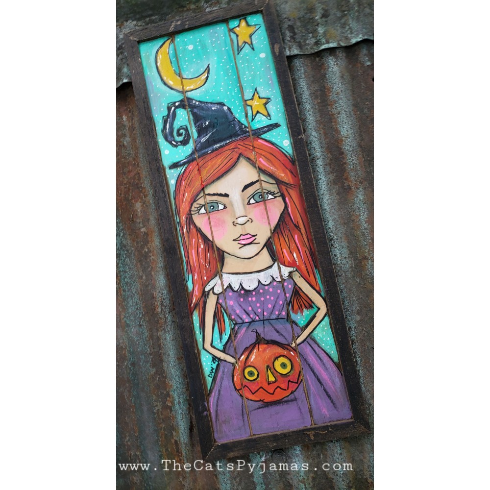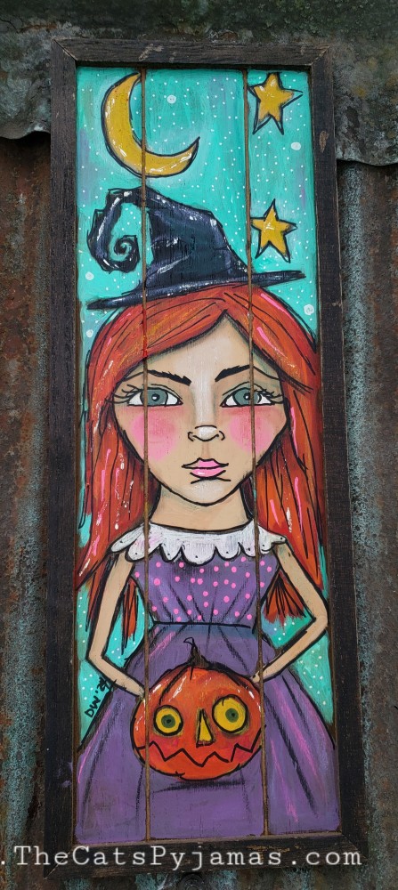 Media painting on recycled wood sign. Measures approximately 16.25" x 5.5".