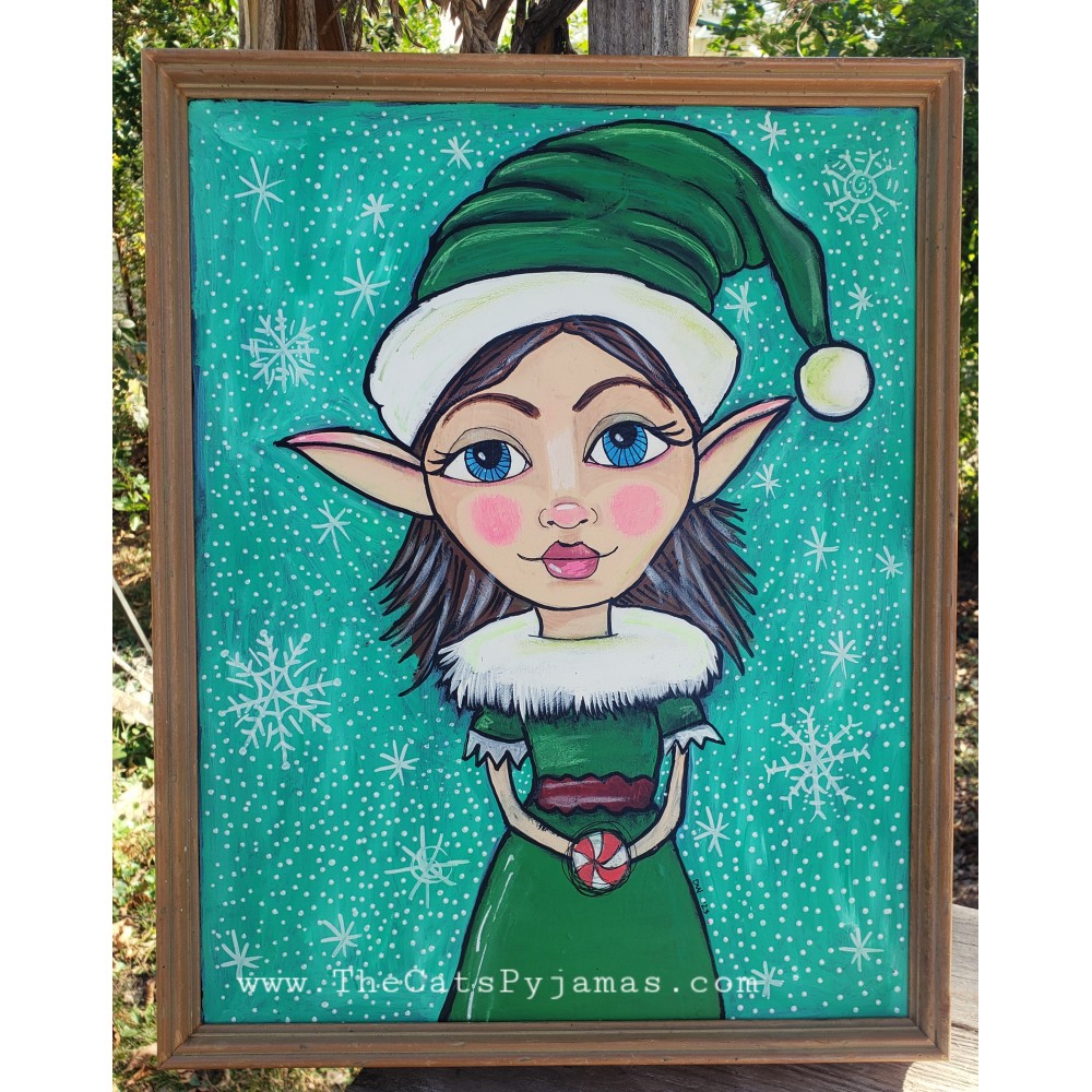 Mixed media painting using a combination of acrylics, oil pastels, watercolors, and colored pencils. Measures about 20.5" x 15.5", including the vintage frame.