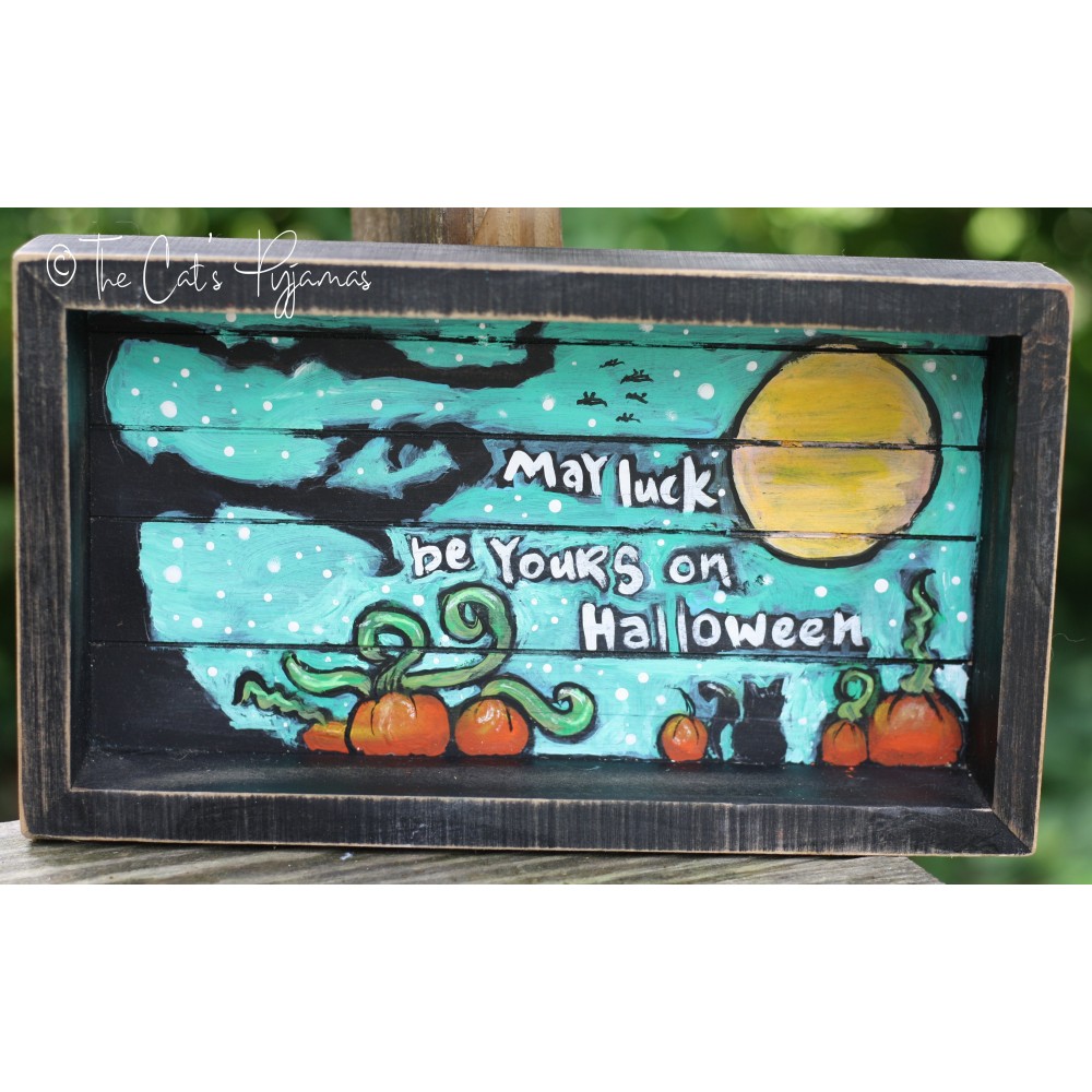 Mixed media painting on wood, measures app. 11" x 6.5" x 1.75"