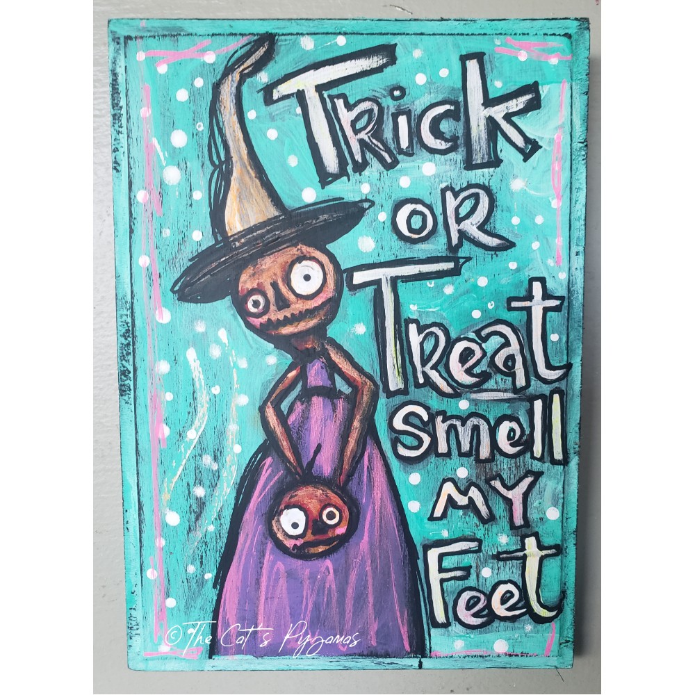 Painted using a combination of acrylic paint, oil pastels, watercolors, and colored pencil. Painted on a wooden plaque that measures a little over 5"x7".