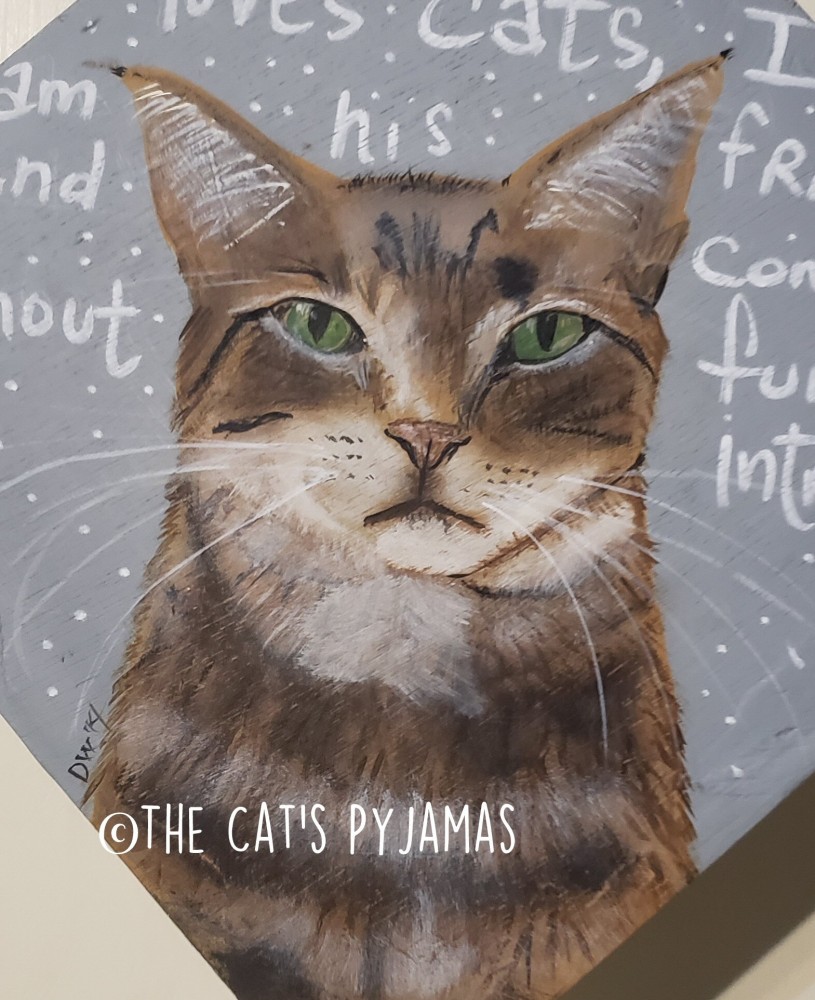 Painted on a wooden canvas with acrylics. Measures 12.25" from corner to corner.