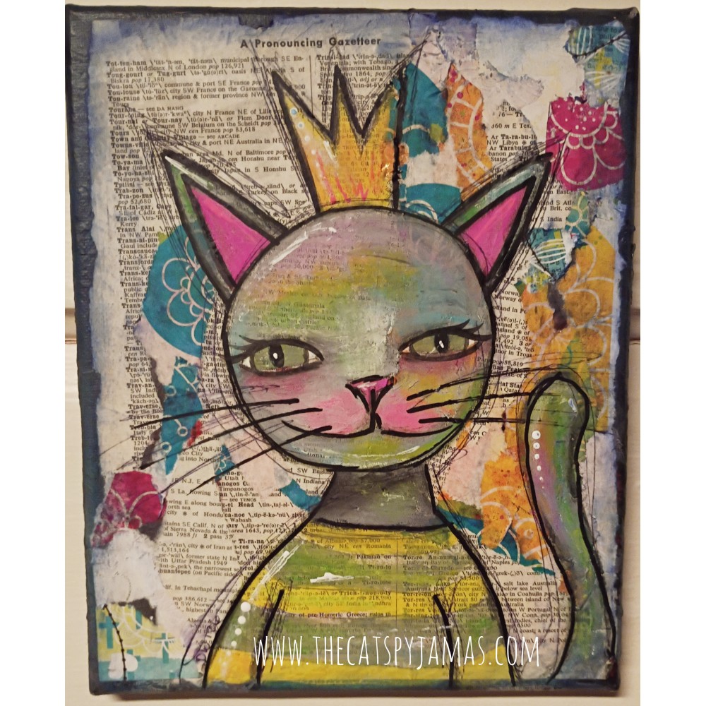 I used a combination of acrylics, watercolors, oil pastels, etc. Painted on an 8x10" wrapped canvas.