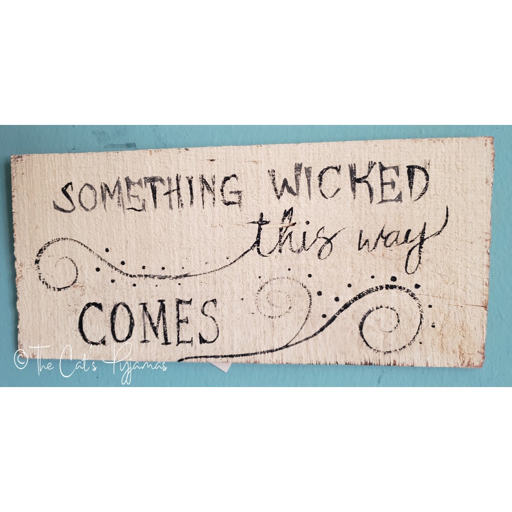 Hand-lettered sign painted on a salvaged piece of wood. Measures 10.5" x 4.75".