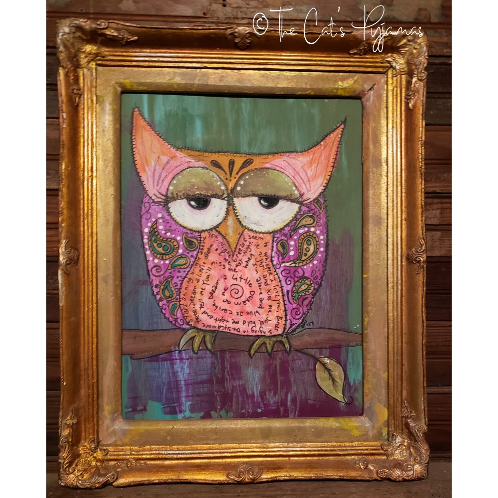 Mixed media art using a combination of acrylics, oil pastels, watercolors, colored pencils, and charcoal. Framed in an ornate gold frame that measures 20.5" x 16.5". This is a vintage frame, so it's not perfect.