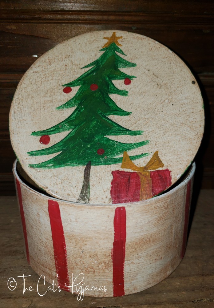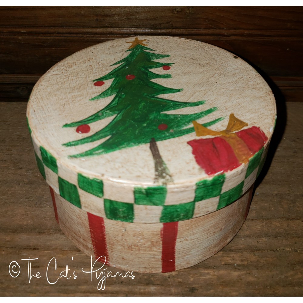 Hand-painted box, 2.5" tall. Great for storing small Christmas items, candy, or for gift giving.