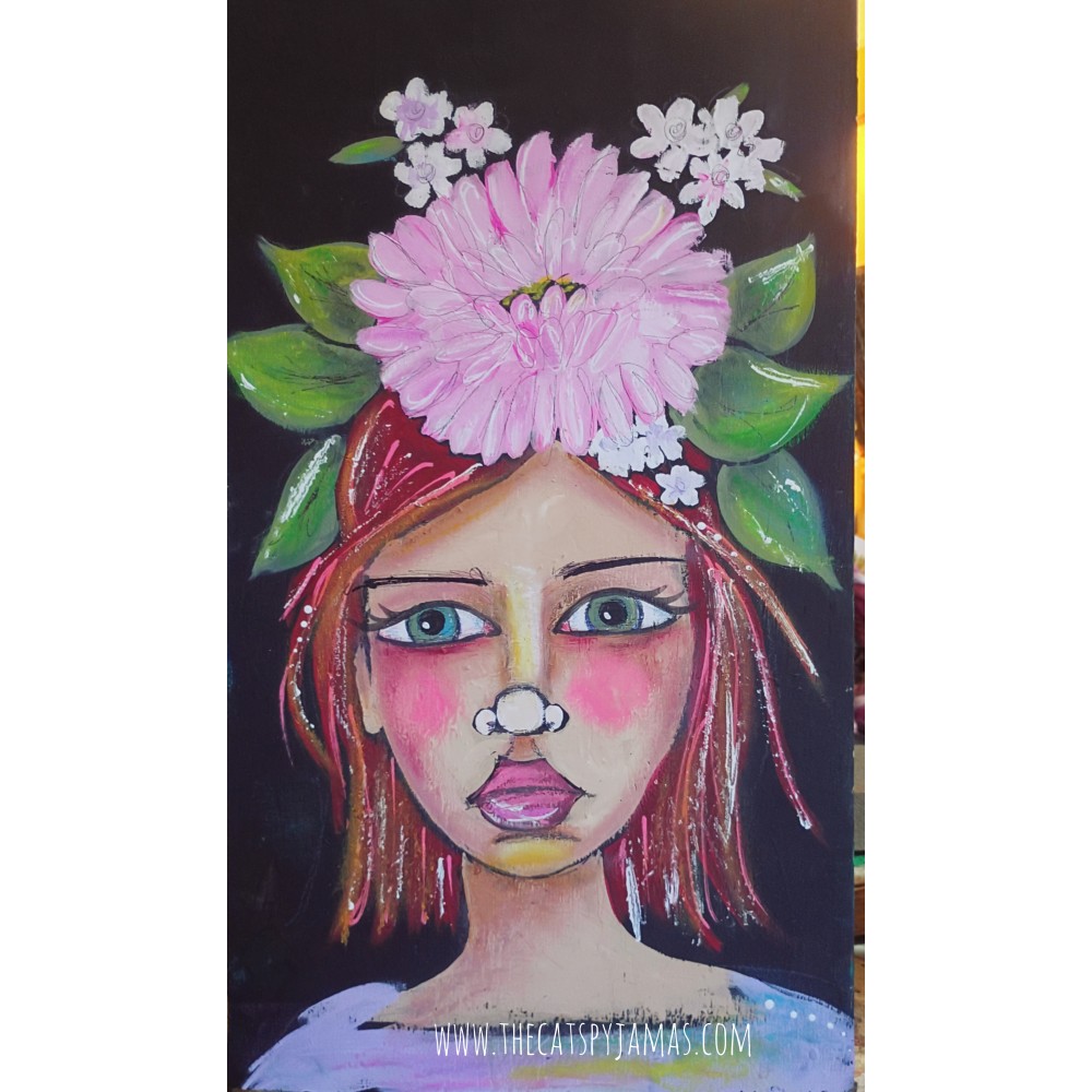 Mixed media painting on wood