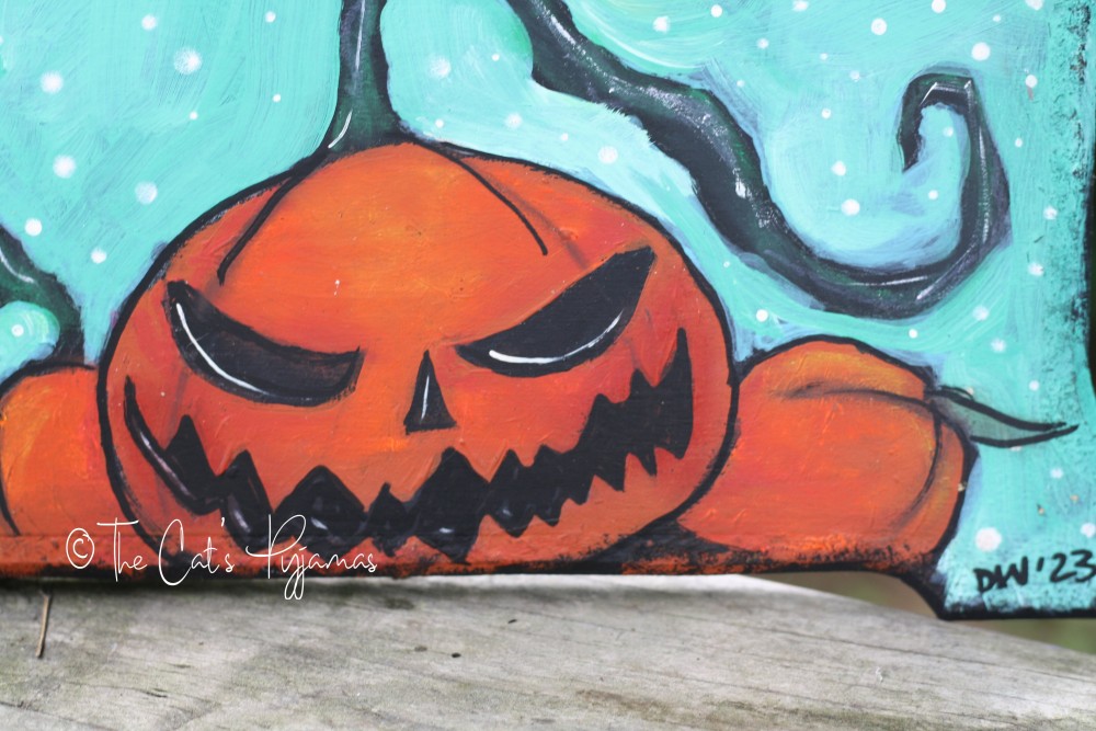 Mixed media painting on an old Home Interior type plaque. It measures 5" x 5" not including the metal hanger. I have 1 more the same size, plus 4 smaller plaques shown in the last photo.