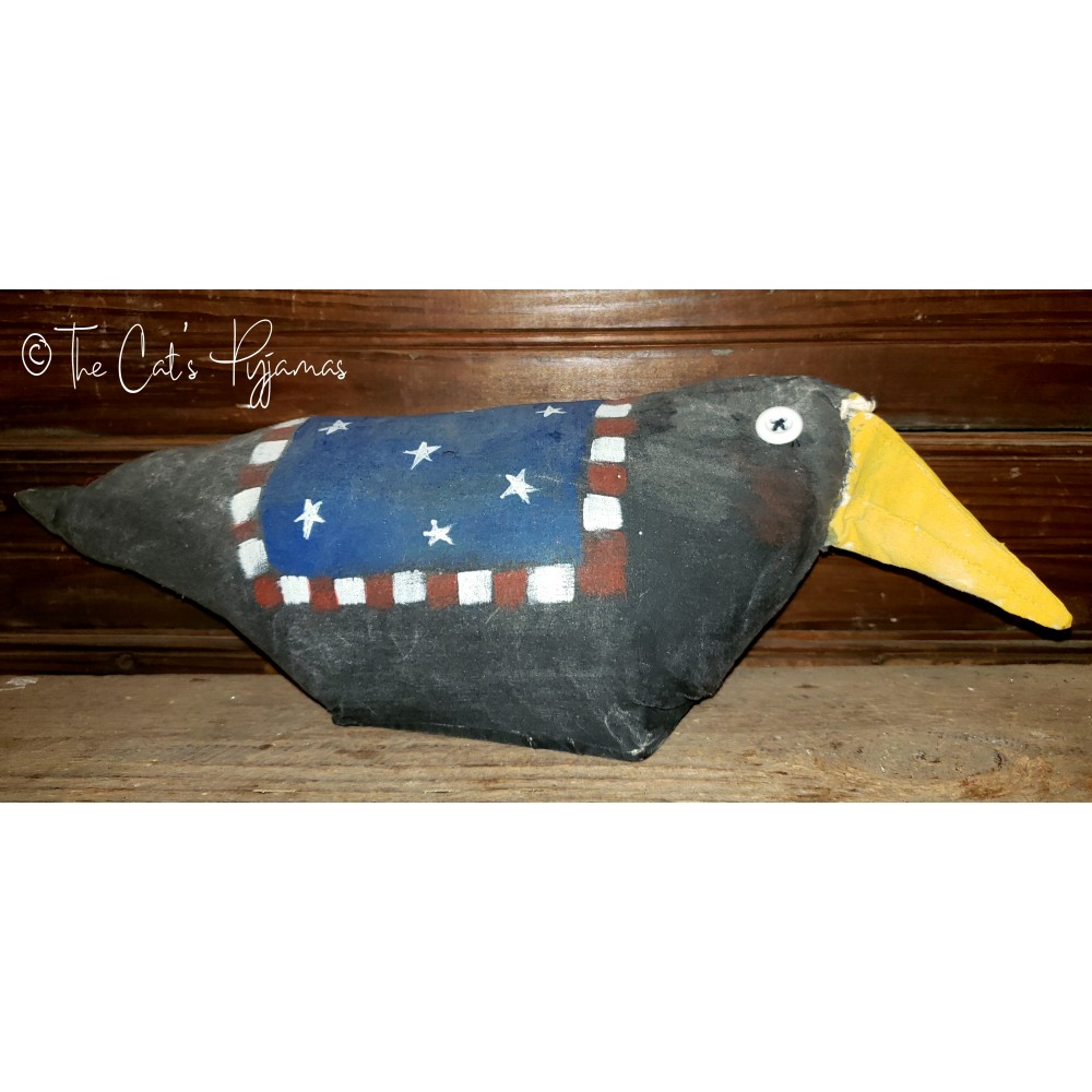 Primitive crow, hand-painted with button eyes and a saddle! Measures about 4" tall x 15" long.