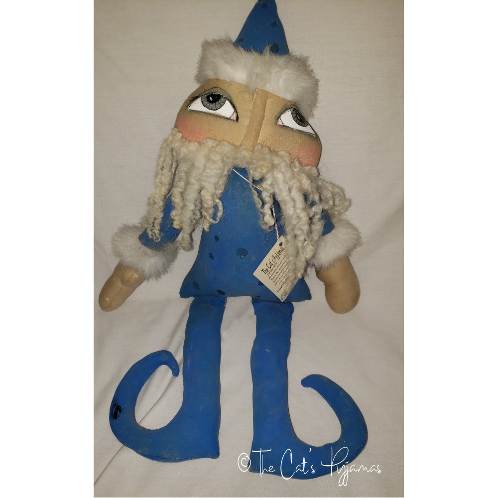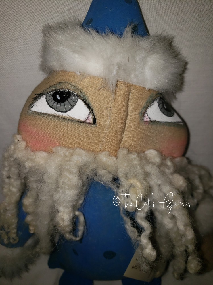 Santa is made from stained and painted fabric. His face is needle sculpted with hand-painted eyes and natural wool beard. He's a little over 21" tall.