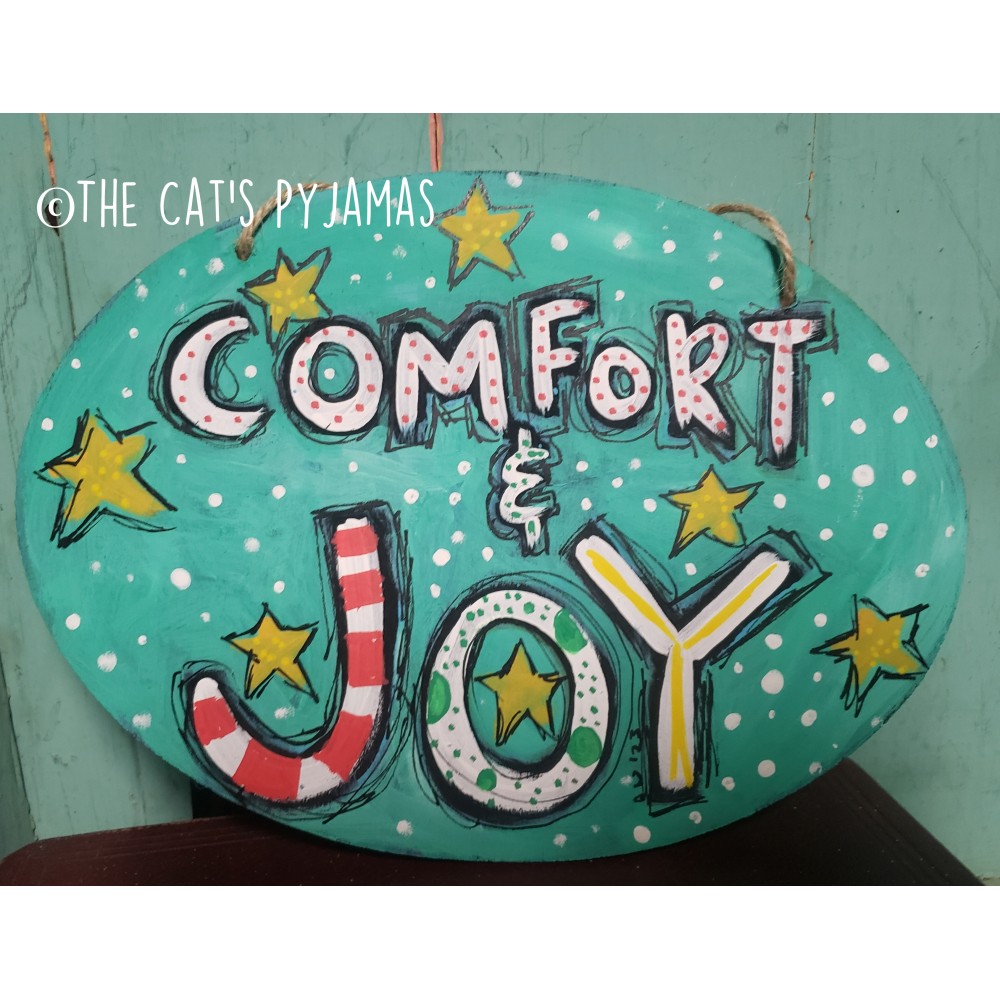 Mixed media painted sign on wood